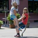 Endlich mal auf einem Dino reiten, ohne daß der Museumswärter hektische Flecken bekommt! Unser Dino ist gutmütig, sieht großartig aus und kann nicht müde gespielt werden – ein guter Stadtbewohner.